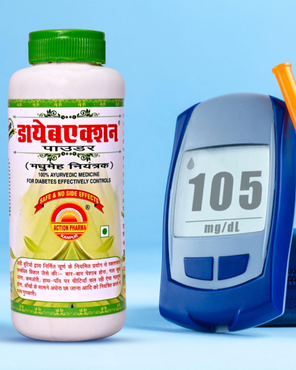 पुरानी से पुरानी डायबिटीज़ (शुगर) की विश्वसनीय सर्वोत्तम औषधि , मधुमेह से उत्पन्न विकारों में भी अत्यंत लाभकारी । डायेब एक्शन में कोई धातु की भष्म एवं पारे के योग आदि का प्रयोग नहीं किया गया है । अतः डायेब एक्शन पूर्णतः सुरक्षित है और दीर्घ समय तक प्रयोग की जा सकती है
